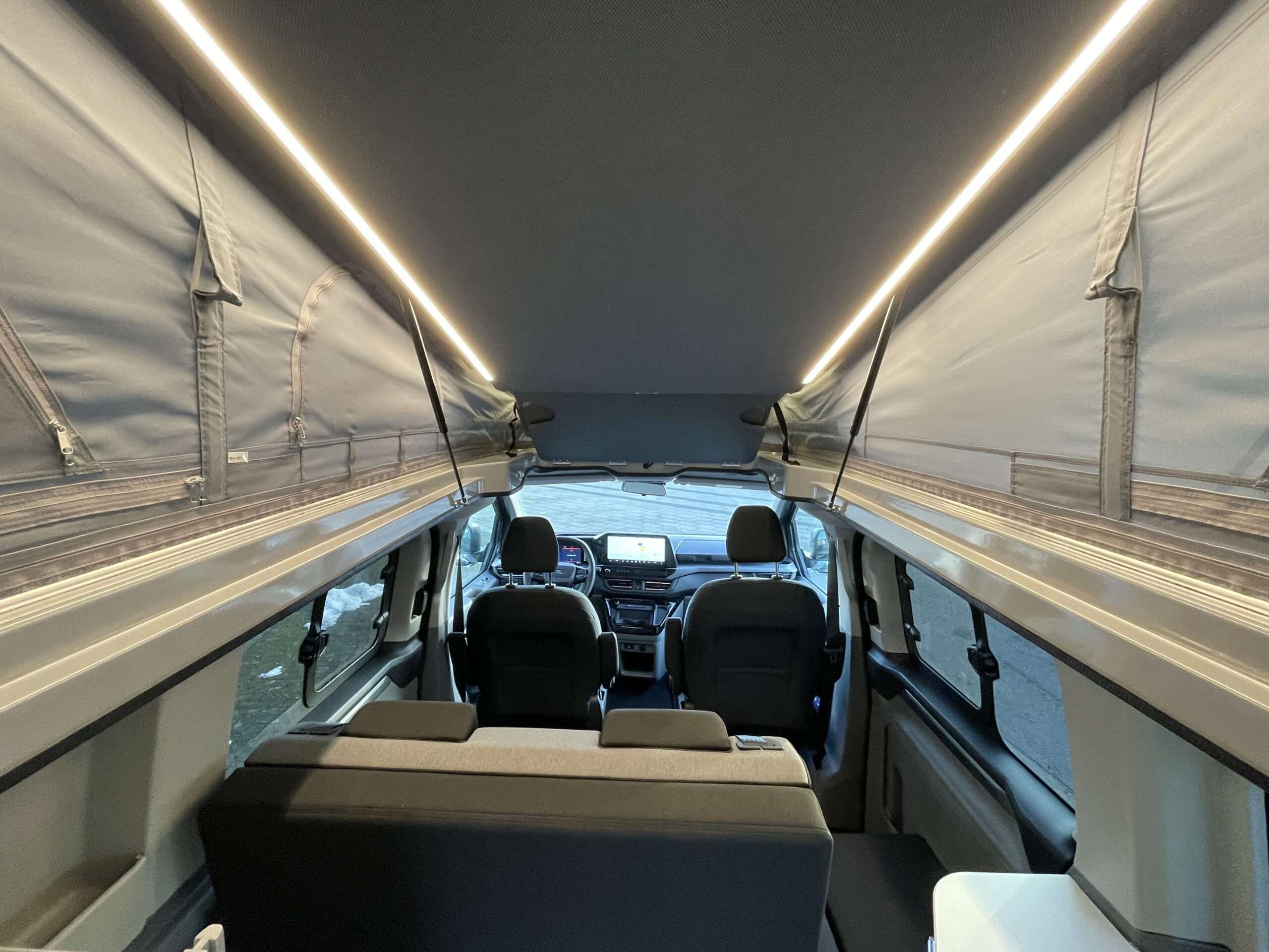 Der neue Copa Casa Pino C530 bietet im Fahrzeug eine Stehöhe bei aufgestelltem Dach von 2,38m und somit ausreichend Freiraum für euren Aufenthalt im Auto, auch bei schlechtem Wetter.